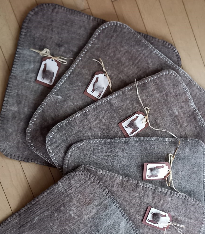 Lamahaare fühlen sich sehr weich und seidig glatt an. In spezieller Herstellung werden sie verfilzt und ein dicker Nadelfilz entsteht. Die abgesteppten Sitzunterlagen eigenen sich für zuhause und zum Mitnehmen bei Wanderungen, da sie sehr leicht sind.