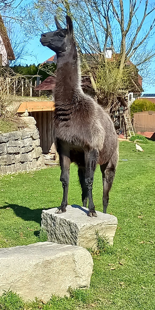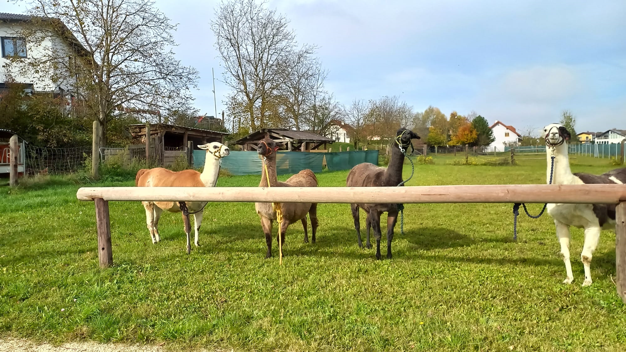 Die Besucher*innen müssen gewissenhaft darauf achten, dass die Lamas beim Führen außerhalb der Koppel absolut nichts fressen.