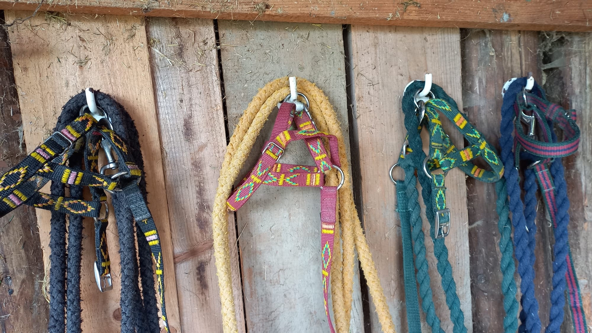 Nach einer Information über das Führen der Tiere bauen wir einen Hindernisparcours auf. Gemeinsam holen wir die Kleinkamele und nach dem Halftern von Samy, Wasil, Pedro und Ignaz marschieren wir zuerst eine kleine, einfache Runde, bevor wir den Parcours mit den Lamas gemeinsam durchwandern.